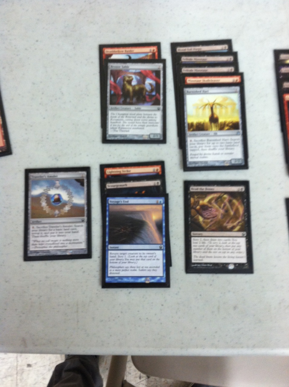 | Blastfire Bolt | COM | 5R | 5 damage to creature. Destroy all equipment attached to it. |
